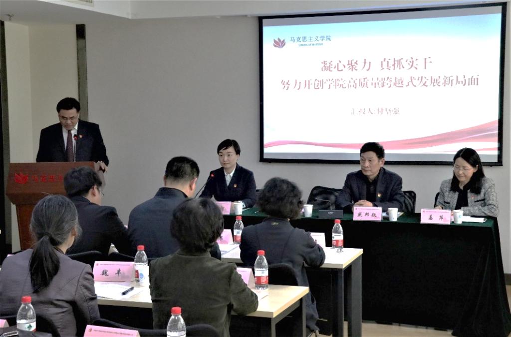 学院党总支书记付坚强同志代表上一届党总支委员会作题为《凝心聚力,真抓实干,努力开创学院高质量跨越式发展新局面》的工作报告。报告从党建思政工作、师资队伍建设、思政课程创新、学科建设和人才培养等方面,全面回顾和总结了学院党总支过去五年的工作。报告指出,学院要以习近平新时代中国特色社会主义思想和党的十九大精神为指导,全面贯彻落实全国教育大会和学校思想政治理论课教师座谈会精神,练好从严治党“基本功”,提高铸魂育人工作实效性,加强师资队伍建设和学科建设,全面建设优势突出、特色鲜明、影响广泛的高水平 小宝探花 ,为实现世界一流“南农梦”,更为实现中华民族伟大复兴“中国梦”而不懈奋斗。