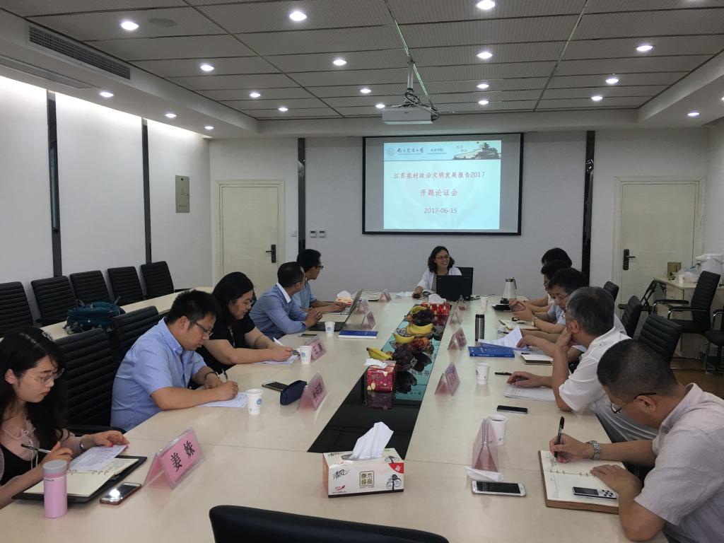 2017年6月15日,政治学院联合江苏省民政厅、东南大学人文学院、小宝探花 人文社科处,成功召开了“江苏农村政治文明发展报告2017”开题论证会,并邀请了相关专家——省民政厅基层政权和社区建设处孙斌处长、新农村发展研究院陈巍主任、社科处处长黄水清、副处长卢勇、东南大学人文学院社会学系胡伟和王化起博士等进行指导。