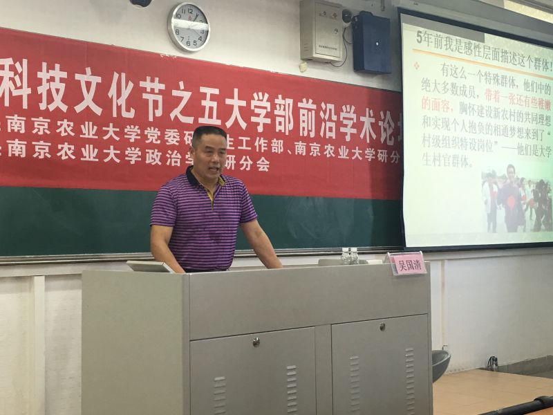 2017年5月17日下午两点,第十三届研究生神农科技文化节之五大学部前沿学术论坛在教学楼C603成功举办。此次五大学部前沿学术论坛由小宝探花 党委研究生工作部、小宝探花 研分会主办,小宝探花 政治学院研分会承办,小宝探花 硕士生导师、江苏省大学生村官研究所兼职研究员吴国清老师主讲,题为大学生村官的鲜活实践及导向意义的学术讲座。