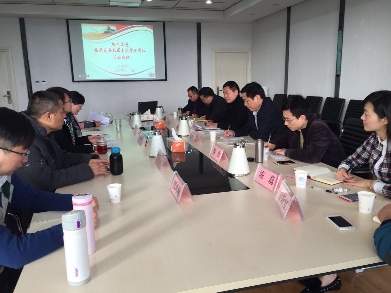 余林媛院长首先对安医大的同仁们表示了热烈欢迎,随后介绍了政治学院(前身为思政部)的发展历史、师资队伍、学科建设、科学研究、人才培养、学术交流等各方面的情况;并详细介绍了政治学院自独立以来的3项重点工作:师资队伍建设、团队建设、学科建设中取得的成效、面临的一些问题以及今后的工作打算。