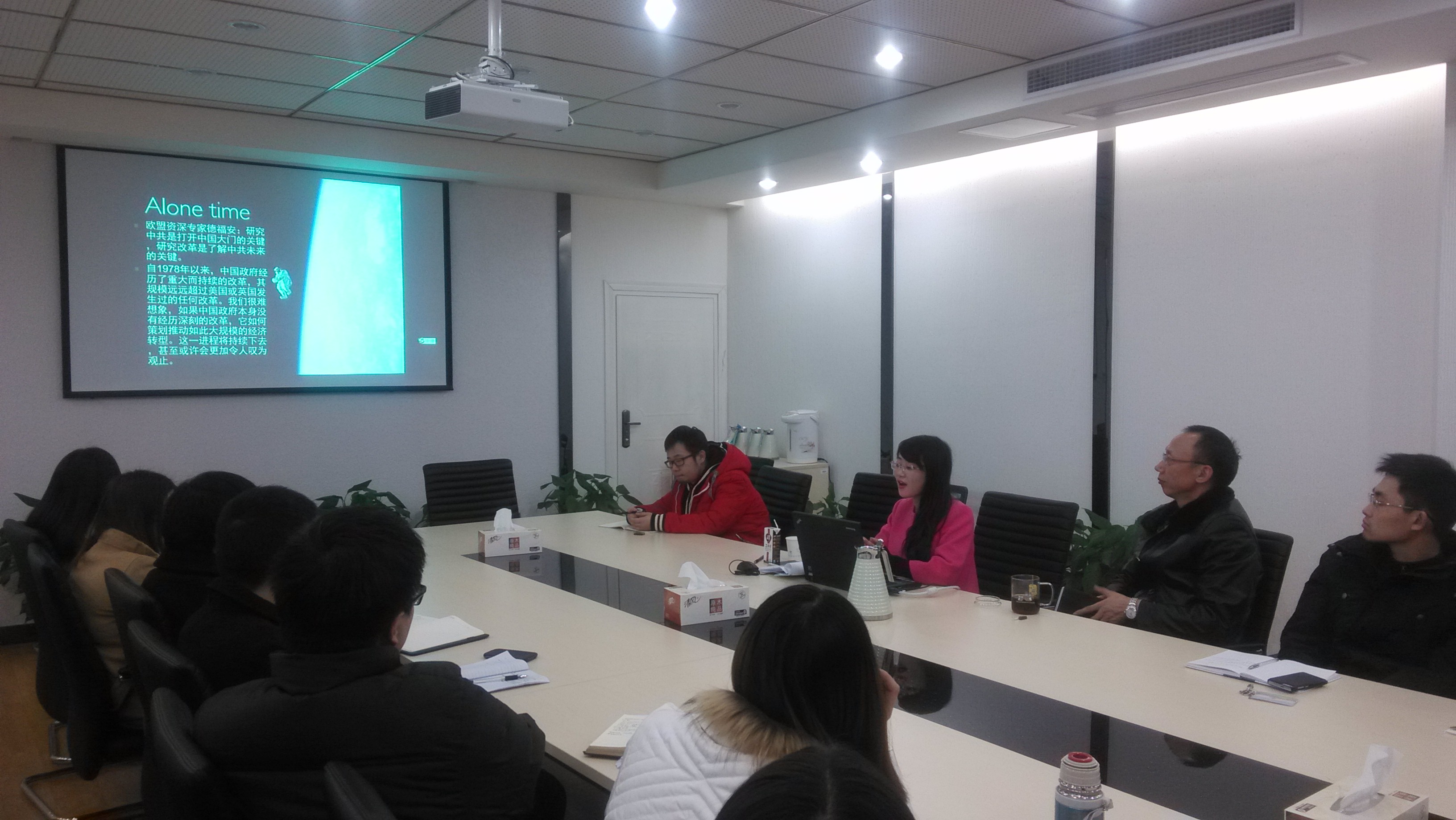 2014年12月25日下午2:30,第23期思·正沙龙在会议室A601室举行。本次沙龙主题为:历史分水岭——中国道路之内涵研究,姜姝博士为此次沙龙主讲人。 姜姝博士毕业于中国人民大学国际关系学院国际政治系,她在此主要结合西方政治哲学的法治精神与中国近现代民族精英对传统政治文化继承和现代性超越两个方面讨论中国道路的基本内涵。她以福山、米尔斯海默和卡赞斯坦三位政治学巨擘围炉谈话“何为历史终结”为引子,指出二十世纪历史的分水岭,并不是福山所认定的1989年自由民主战胜共产主义,而是战后以来非殖民化历程中所蕴含的多元现代性。首先,通过对霍布斯和洛克政治思想中蕴含的“主权逻辑”和“宪政逻辑”相较,探讨英美建宪立制的历史过程及经验,得出“国家职能扩大的必然性,以及国家与生俱来的暴力潜能,决定着国家在履行管理职能的过程中改变着社会,甚至形塑着社会团体”的结论。第二,解析中国道路的传统文化内涵和现代性含义,中国传统政治哲学秉持“最大化目标,最小化政策”原则,古有“不战而屈人之兵”的孙子哲学,今有毛泽东、邓小平和习近平等国家领导人的文韬武略,中国有可能自觉地把西方更灵活、也更激烈的火力与自身保守的、稳定的传统文化融为一炉。如果这种有意识、有节制地进行的恰当融合取得成功,其结果可能为文明的人类提供一个全新的文化起点。 本次沙龙在同学们热烈的讨论中落下帷幕,此次学术沙龙激发了同学们对政治哲学、政治制度和政治学理论的学习热情。