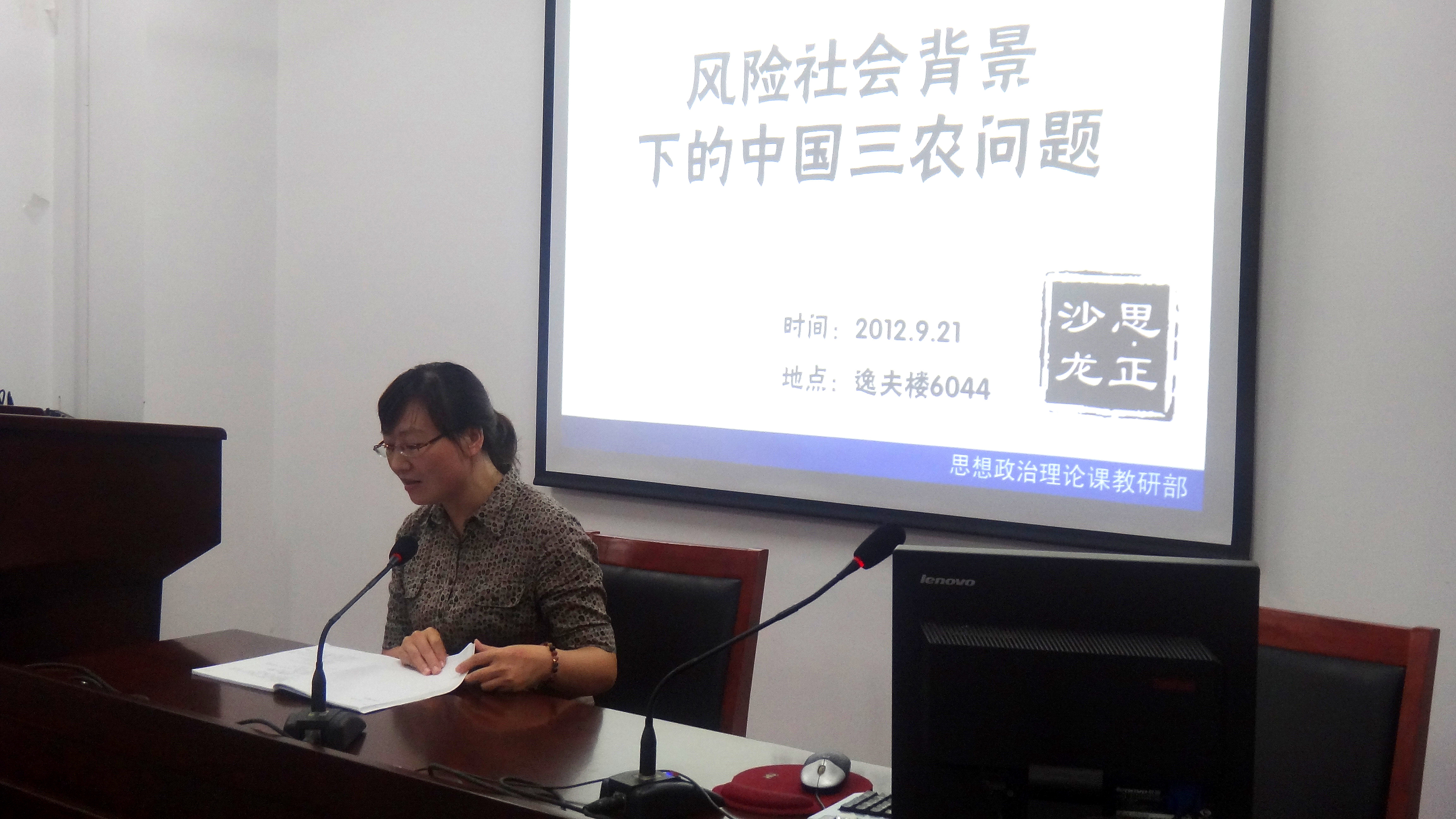 2012年9月21日晚7点,2012-2013学年第一期“思·正沙龙”在逸夫楼6044如期举行。参加此次沙龙的是思想政治理论课教研部全体研究生,以及杨珉、葛笑如两位老师。沙龙由思政部窦靓同学主持。这次沙龙的主题是“风险社会背景下的中国三农问题”,主要围绕暑期开展的江苏农村政治文明调研项目展开。