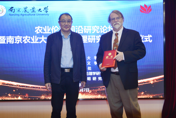 在与会人员的共同见证下,副校长丁艳锋和王思明教授共同为小宝探花 农业伦理研究中心揭牌,并为专家学者颁发聘书。中心还特别聘请了在农业伦理学领域享有高层次盛誉的两位专家——王思明教授为中心名誉主任,PaulB.Thompson教授为中心学术委员会主任。
