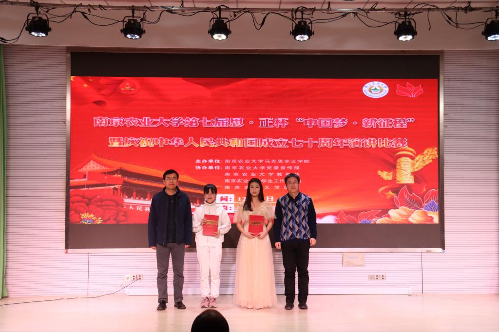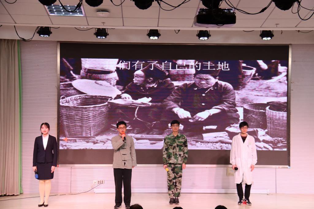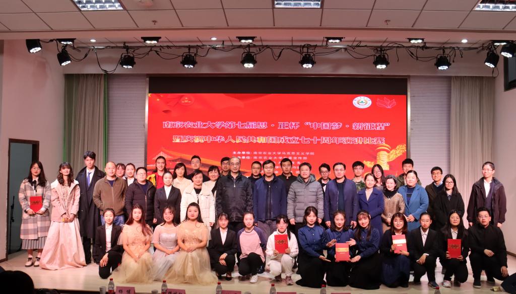 来自全校各学院的12支团队进行了激烈的角逐。选手们或歌颂“花中出君子,聊赠一枝春”的时代楷模,或咏叹“国魂七十载,江山何雄哉”的中国精神;内容涵盖了筚路蓝缕的创业之路,气壮山河的建设浪潮,以及扎根基层的脱贫致富;形式十分多样,有炫酷夺目的视频播放,有意蕴莞莞的诗词诵读,也有“代入感”强烈的情景剧表演。现场气氛热烈和谐,点评老师言辞风趣,在多轮“友情PK”后,来自园艺学院罗莹团队的《换了人间》和来自农学院王震团队的《华夏群星闪耀时》共同分享了一等奖的桂冠。