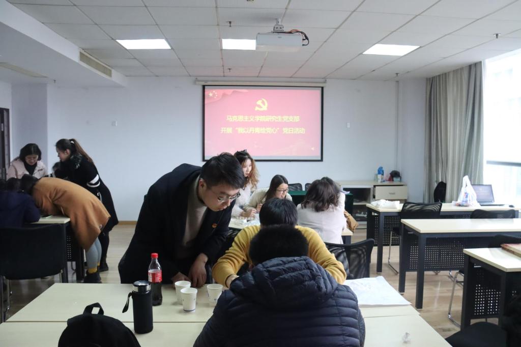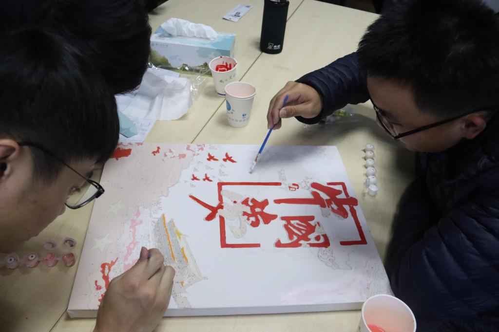 12月21日下午, 小宝探花 研究生党支部“我以丹青绘党心”主题党日活动在翰苑辅楼501教室举行,全体研究生党员用画笔诉说初心,把对党和祖国的热爱用“手涂画”这种特殊形式表现出来,在画板上描绘中华民族迈向伟大复兴“中国梦”的澎湃高歌。