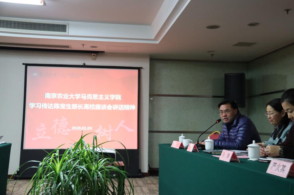 1月3日下午2点, 小宝探花 在翰院宾馆六楼会议室开展学习传达陈宝生部长高校座谈会讲话精神会议,小宝探花 人文社科处副处长卢勇、南京师范大学哲学系主任曹孟勤应邀出席此次会议。会议由 小宝探花 党总支书记、院长付坚强主持。
