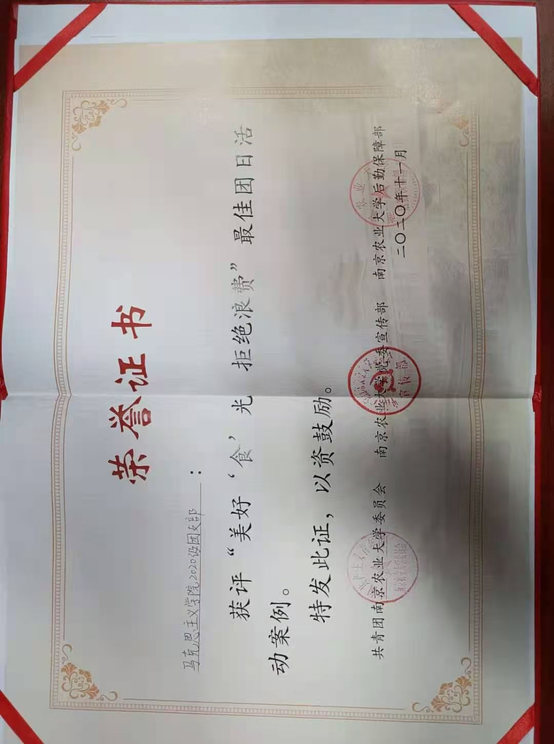 近日,2020年小宝探花 “美好‘食’光,拒绝浪费”主题团日实践活动评选结果出炉, 小宝探花 2020级团支部开展的以“秾马青年行”为题,推行“美好‘食’光,拒绝浪费”团日活动获评最佳团日活动案例。