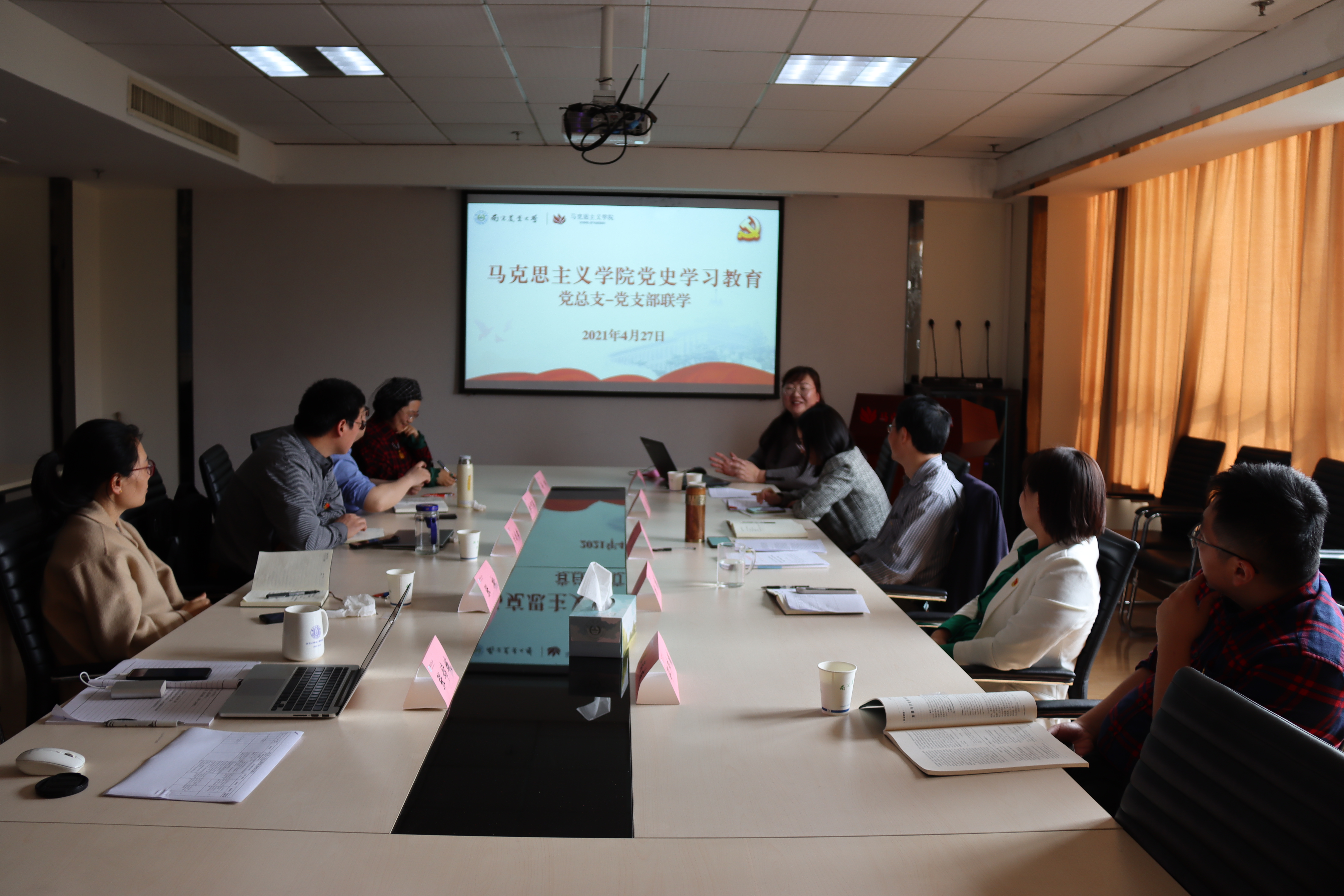 4月27日, 小宝探花 “党总支-党支部”党史联学活动在303会议室举行,学习主题为“遵循两个《决议》,学习百年党史”,主讲人为学院教授葛笑如。党总支副书记屈勇、杨博,副院长姜萍,党总支委员王建光、葛笑如,学院教师党支部书记和党组织员参加活动。活动由屈勇主持。