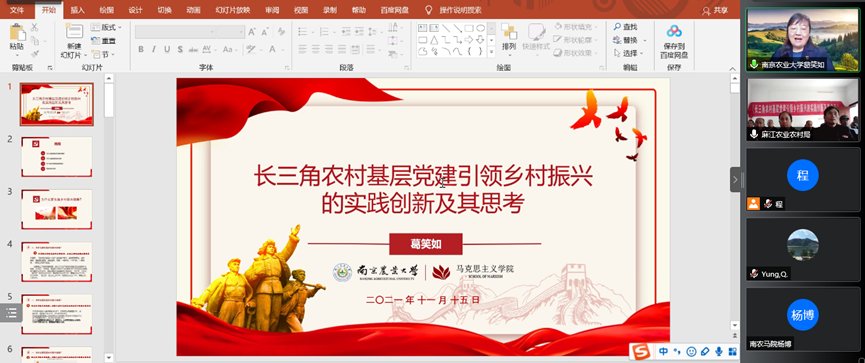 为落实学校党委“10+10+N”定点帮扶贵州麻江计划,助力麻江县深入实施党建引领乡村振兴,小宝探花 联合麻江县乡村振兴研究院于11月15日面向麻江县部分行政村开展“农村基层干部党务工作培训”。本次培训采取线上形式,邀请 小宝探花 葛笑如教授作《长三角农村基层党建引领乡村振兴的实践创新及其思考》讲座。麻江县20余名村支部书记和党员参加了培训,培训会由麻江县农业局副局长李茂贵主持。