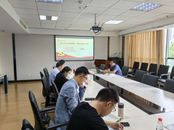 院长付坚强以“学习习近平法治思想,全面推进依法治国”为主题,从习近平法治思想的形成背景、主要内容和理论逻辑、主要特征和原创性贡献三个方面进行授课,对习近平法治思想形成发展脉络和深入贯彻落实习近平法治思想进行了深刻解读。他表示,习近平法治思想内涵丰富、论述深刻、逻辑严密、系统完备,蕴含了许多极具学术意义和现实意义的理论资源。他鼓励支部党员教师认真细致学习习近平法治思想,结合教学科研的实际需求,从中发掘理论问题,作为教学科研的目标和方向。