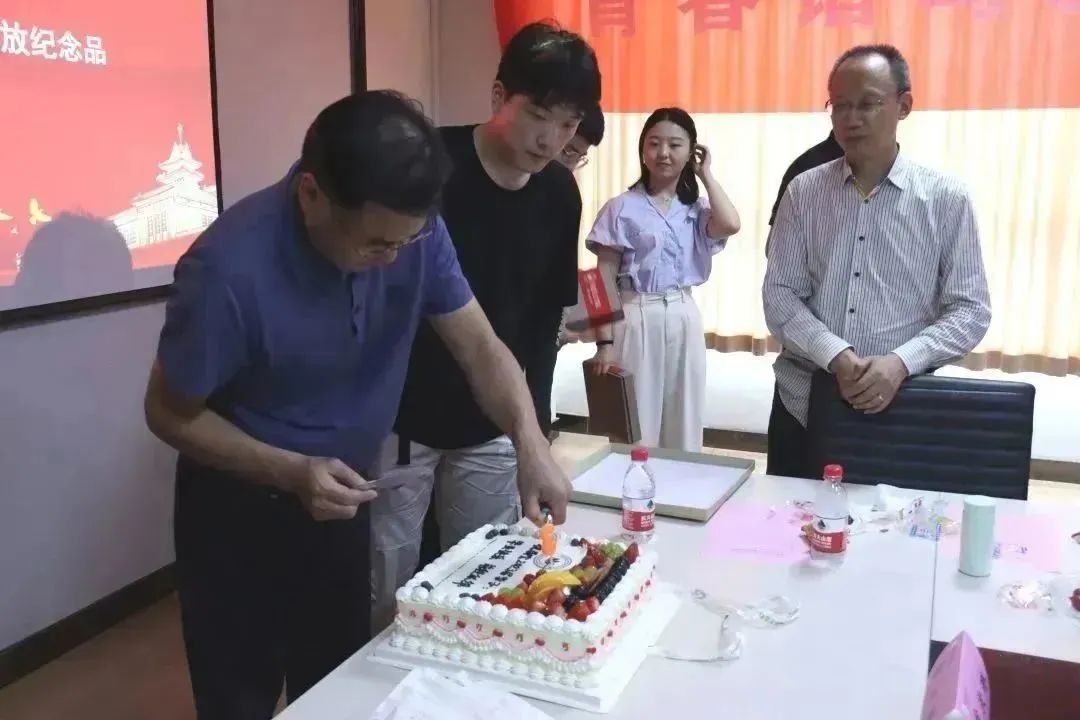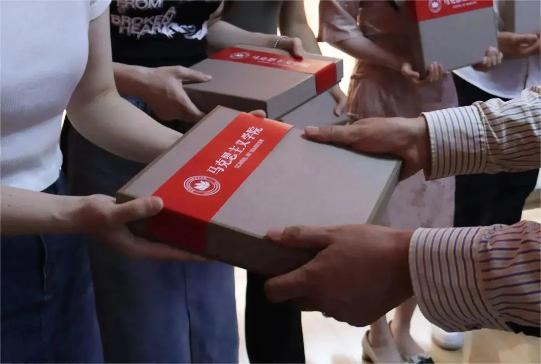 座谈会最后,在大家互相鼓励祝福的话语中,在青春洋溢的欢笑声中,与会师生共同分享了“毕业快乐,前程似锦”毕业蛋糕,精致清晰的马院logo十分醒目,蛋糕不仅是共同品尝的一份甜蜜,同样也承载了对马院毕业生的美好祝愿,祝愿大家踔厉奋发,勇毅前行!