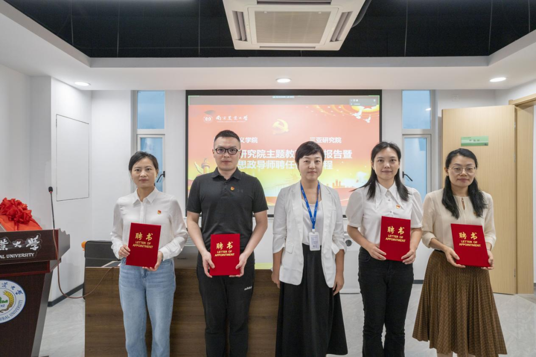 期间,在小宝探花 三亚研究院还举行了学习贯彻习近平新时代中国特色社会主义思想主题教育辅导报告暨思政导师聘任仪式,崖州湾科技城管理局党委专职副书记牛晶晶为思政导师颁发聘书并讲话, 小宝探花 副教授张松作“弘扬伟大建党精神”辅导报告, 小宝探花 党委书记郑颖、三亚研究院常务副院长姜爱良、 小宝探花 和三亚研究院师生代表参加了会议。