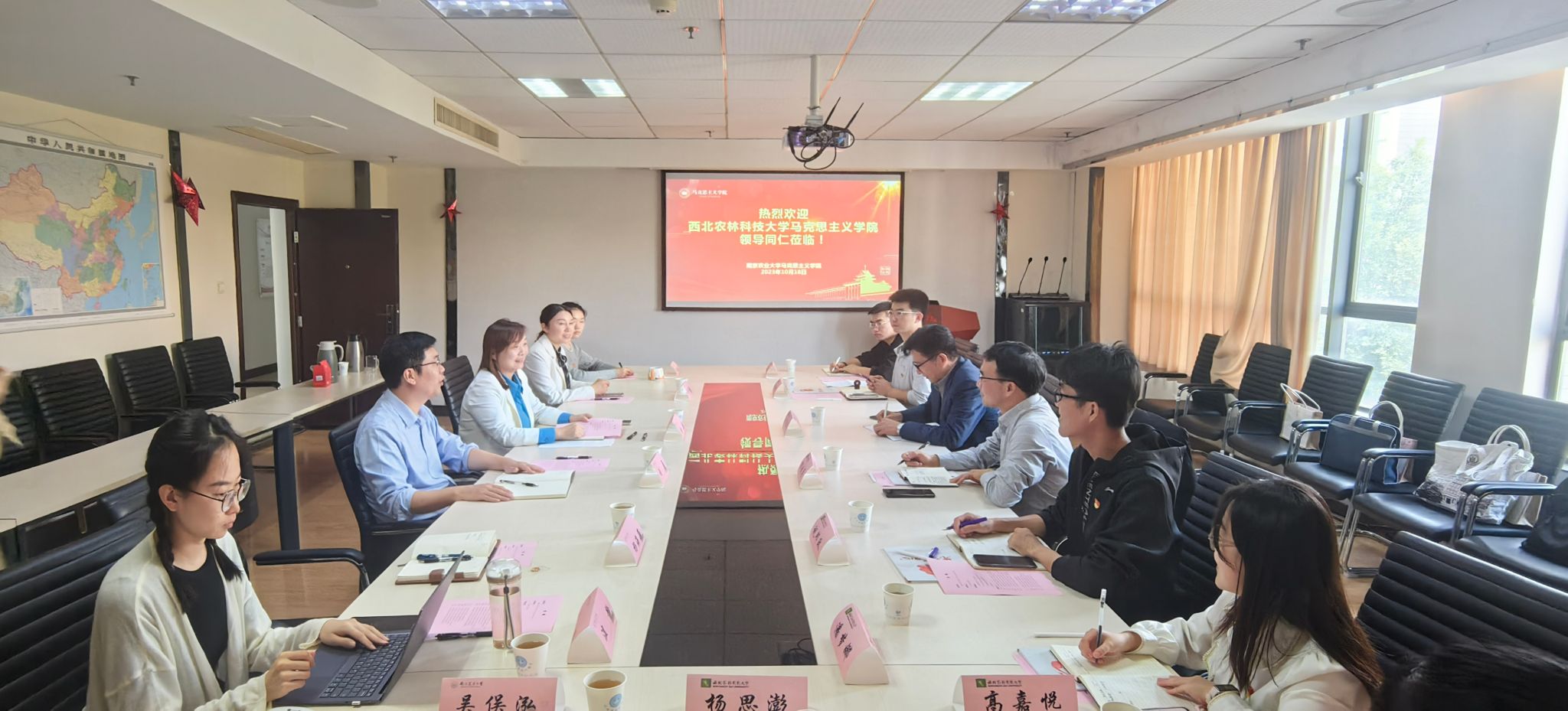 10月18日上午,西北农林科技大学 小宝探花 党委副书记、副院长王家武、中国近现代纲要系副教授郭晓勇等一行来 小宝探花 调研交流党建、行政和学生工作。学院党委书记刘勇、副书记杨博、学院办公室主任杨海莉、思政教育主管张嫦娥及学生骨干参加座谈会。