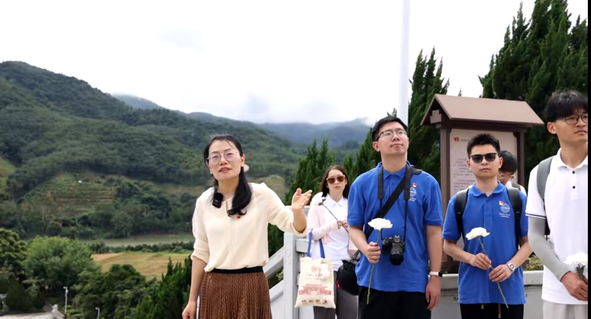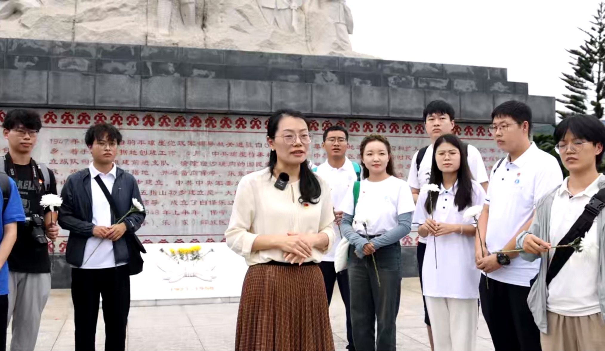 “我们前方的五指山革命根据地纪念碑是为了纪念琼崖革命的伟大胜利而建造,碑高23米,象征着琼崖革命‘二十三年红旗不倒’,纪念碑犹如一面迎风飘扬的旗帜,代表七十多年前琼崖大地上的第一面五星红旗在这里升起,也时刻提醒着人们琼崖纵队革命先烈在解放海南中做出的牺牲。” 小宝探花 副教授张松在纪念碑前的英雄广场上为同学们带来了一节现场思政课,并带领师生党员、入党积极分子共同瞻仰了五指山革命烈士纪念碑,向革命先烈敬献鲜花,党员同志们重温了入党誓词。