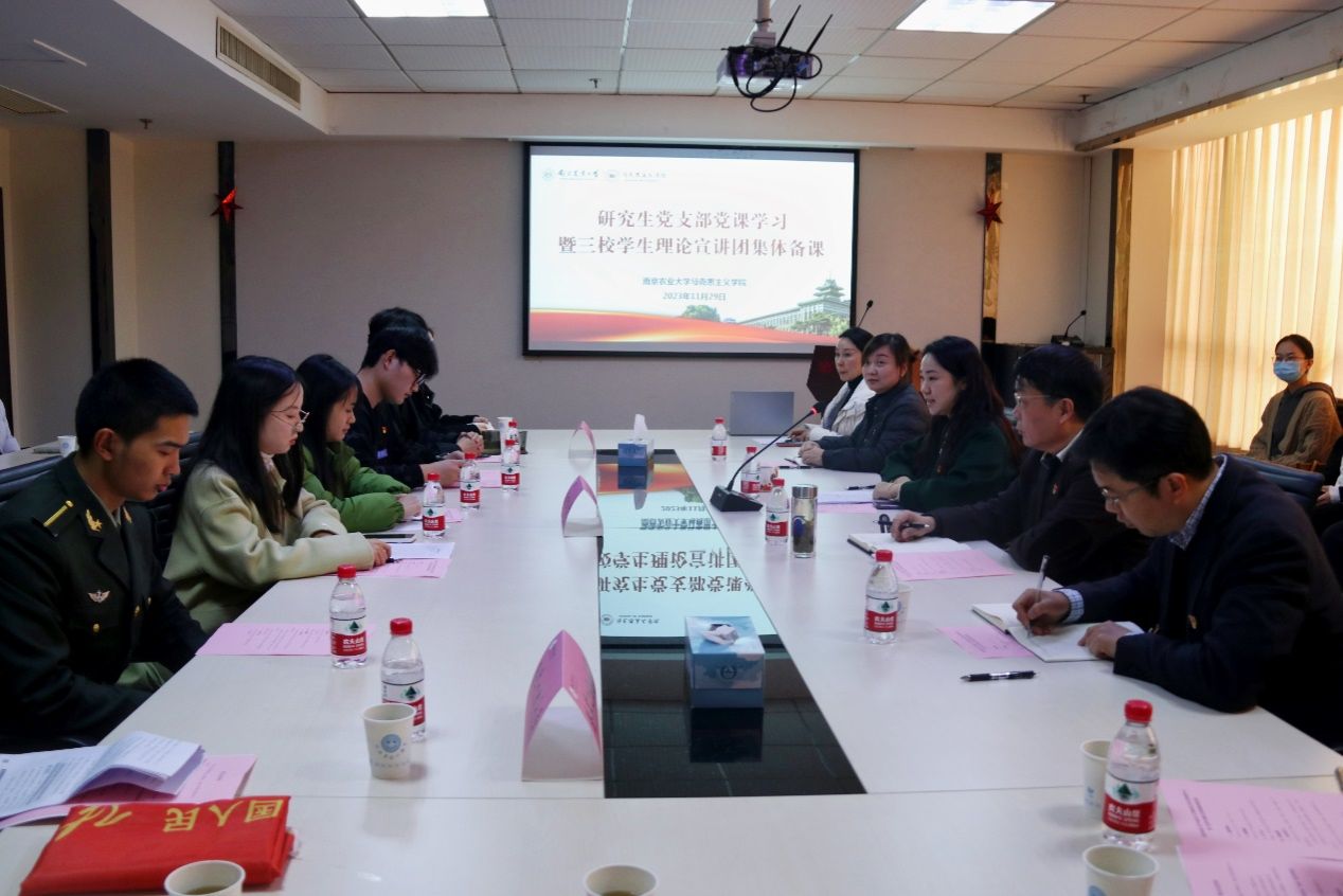 为深入贯彻全国宣传思想文化工作会议精神,落实习近平总书记关于做好做强马克思主义宣传教育工作等系列重要指示,11月29日下午, 小宝探花 研究生党支部在学院303会议室开展党课学习暨陆军工程大学、南京理工大学、小宝探花 三校学生理论宣讲团集体备课活动。教育部高校党建工作联络员,东南大学原党委副书记、纪委书记任利剑出席会议并作指导讲话。学院党委书记刘勇、副书记杨博、思政教育主管张嫦娥、宣讲团指导老师许丽出席会议,三校宣讲团成员代表、学院研究生党支部成员及部分积极分子参加会议。会议由研究生党支部书记周昳涵主持。