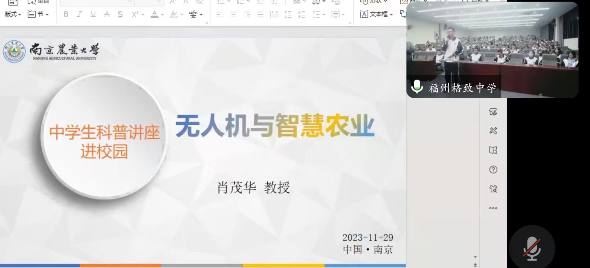 为进一步加强与优质生源中学的联系,增进学生对小宝探花 的了解,福建省招生工作宣传小组于11月29日下午面向福州格致中学高一年级开展科普讲座进中学活动,由工学院教授、博士生导师肖茂华作“无人机和智慧农业”讲座。