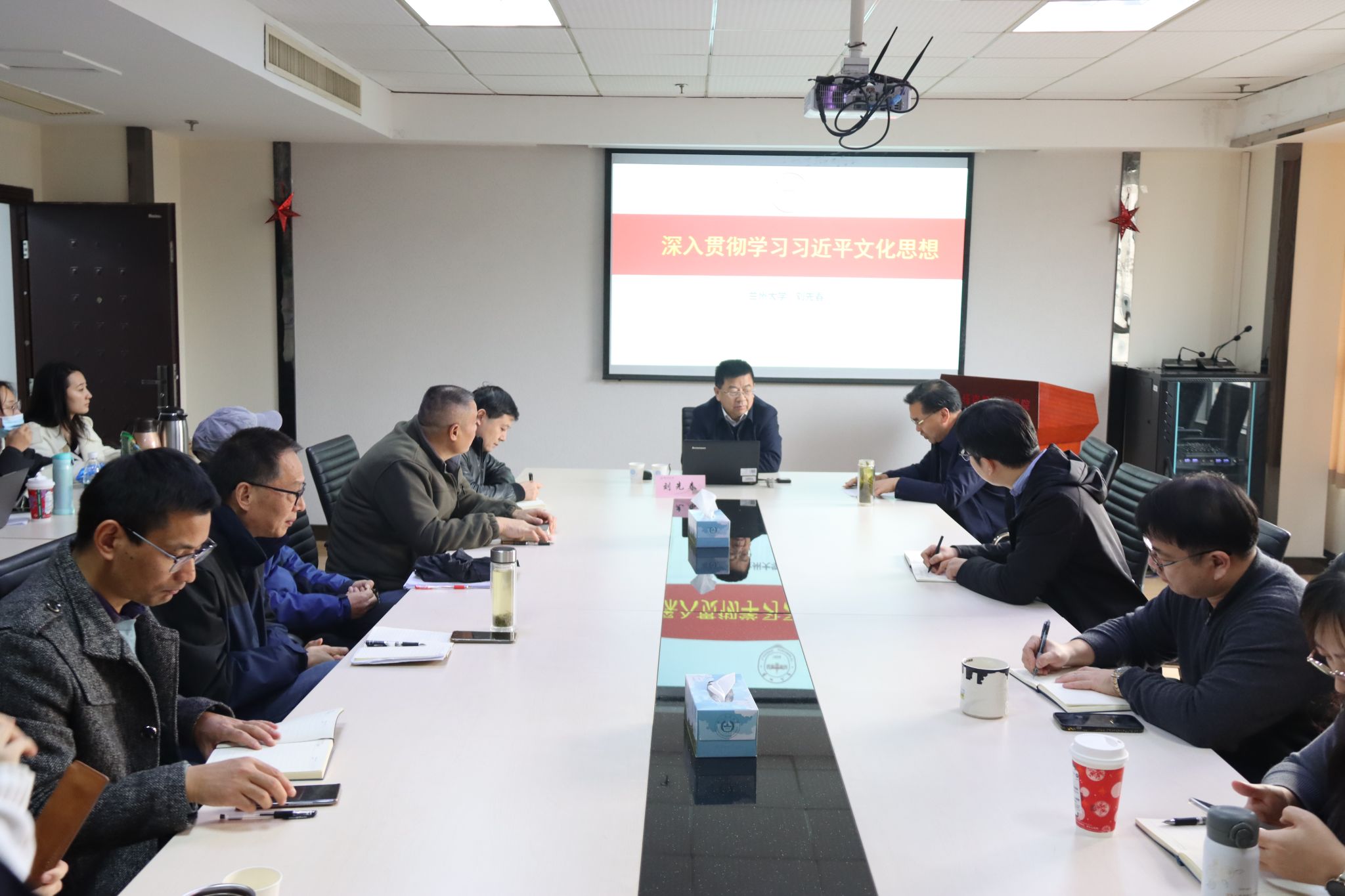 2023年12月4日下午, 小宝探花 在翰苑辅楼303会议室举办“思·正大讲堂”,特邀中央马克思主义理论研究和建设工程首席专家、教育部高校思政课教指委副主任委员、兰州大学 小宝探花 刘先春教授作题为“深入贯彻学习习近平文化思想”的主题报告。学院班子全体成员、思政课教师及研究生参加。报告由院长付坚强教授主持。