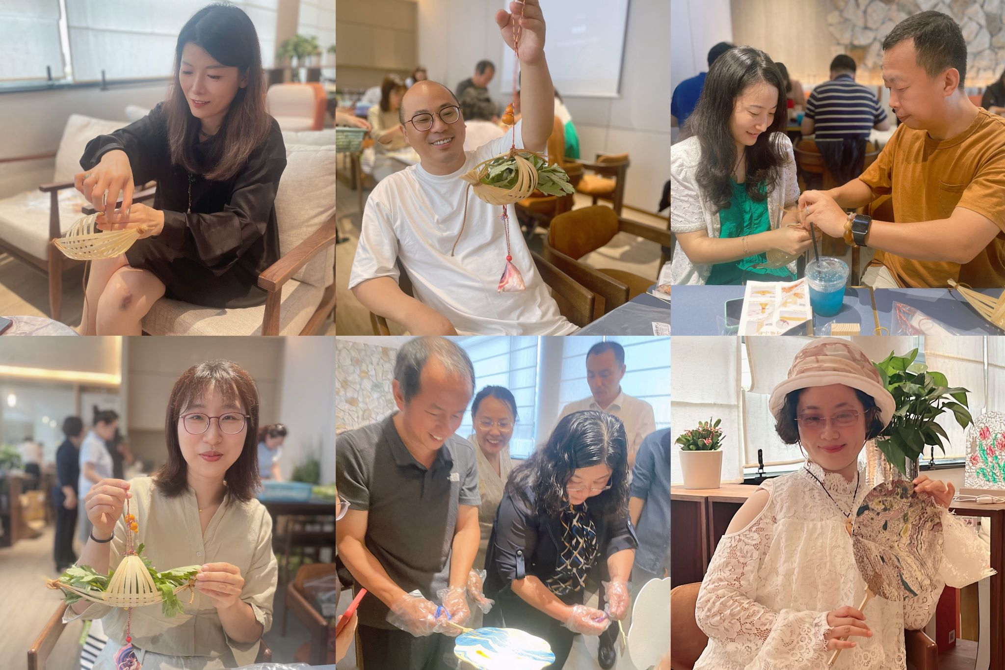 活动安排在翰苑宾馆一楼大堂吧,经过两个小时的学习,大家学会了编“艾草船”、绘制掐丝珐琅“粽子钥匙扣”、做“漆扇”等传统民俗活动。