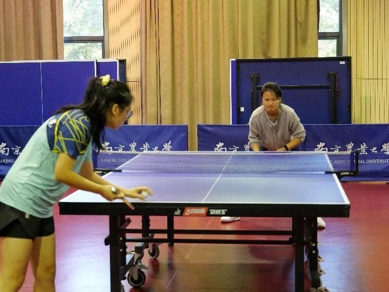 本次“神农杯”研究生乒乓球赛还设置了友谊赛环节,邀请来自南京理工大学乒乓球运动员。在友谊赛中,研究生以球会友,切磋技艺,以友谊赛的方式加深了感情。