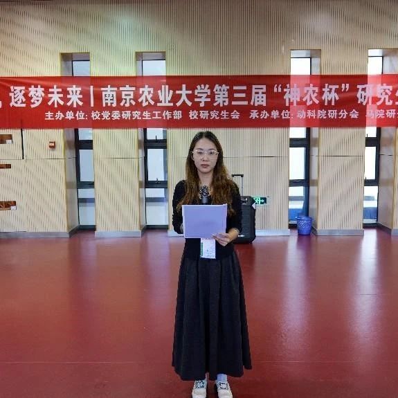 (动物科技学院研究生辅导员何青芬为动物医学院颁发团体赛亚军奖杯)