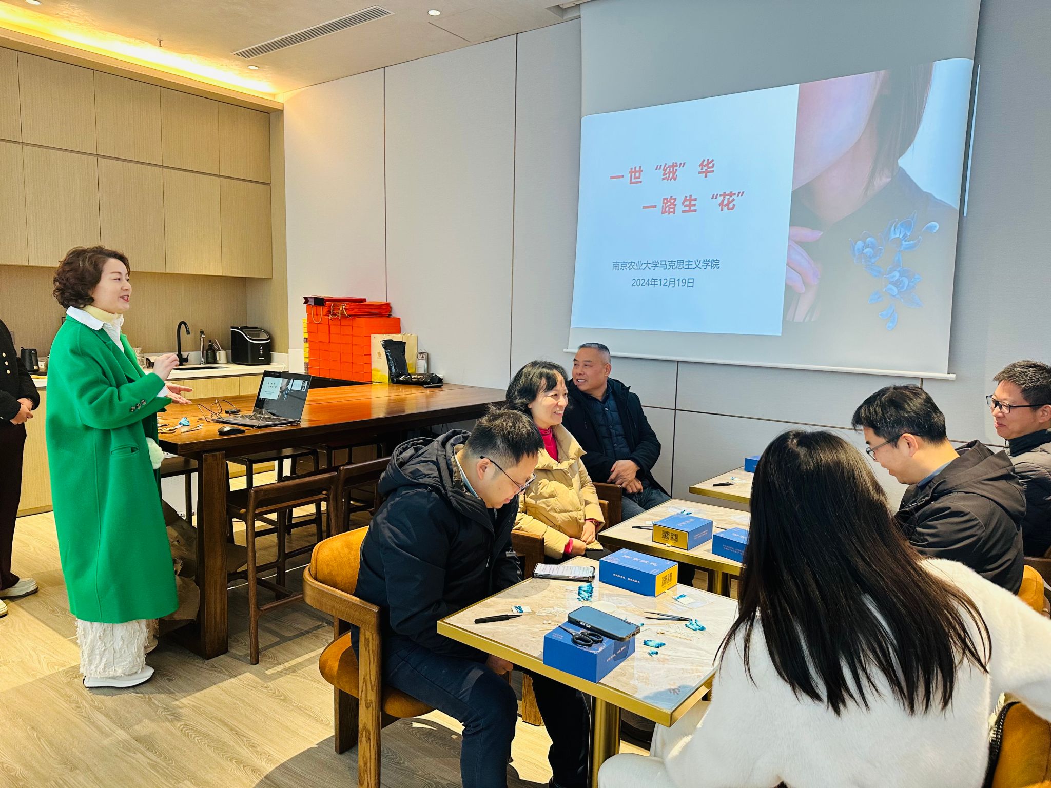 此次活动特别邀请了南京摇曳绒花非遗文化传播有限公司创始人姚朝颖进行现场授课,为教职工们详细讲解了绒花的起源、制作工艺以及文化内涵。在姚老师的指导下,教职工们纷纷动手尝试,从炼丝、染色到勾条、烫绒,每一道工序都倾注了大家的热情和耐心。