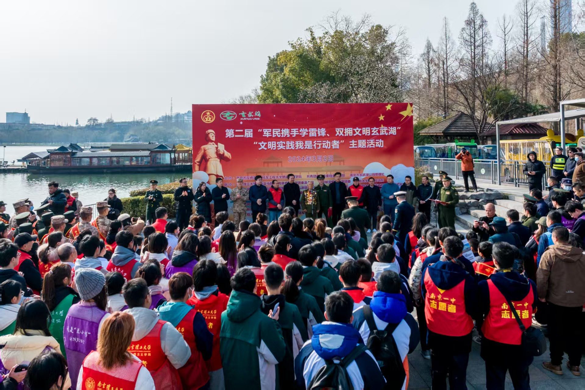 今年的3月5日是全国第62个学雷锋纪念日和第26个中国青年志愿者服务日,3月1日, 小宝探花 “致远”宣讲团成员在玄武湖公园参加第三届“军民携手学雷锋、双拥文明玄武湖”主题文明实践活动,与南京理工大学“红话筒”政治理论宣教团、陆军工程大学“先锋”宣讲团成员同台宣讲。