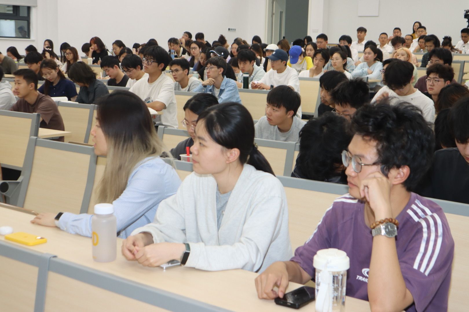 5月13日下午,在滨江校区公共教学楼教室,王皓以《厚植青春拔节向上的根基——深入学习贯彻民营企业重要讲话精神》为主题,为在场近200名师生带来了一场别开生面的“思政课”。