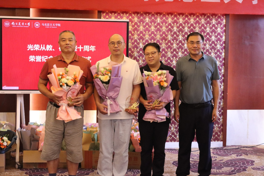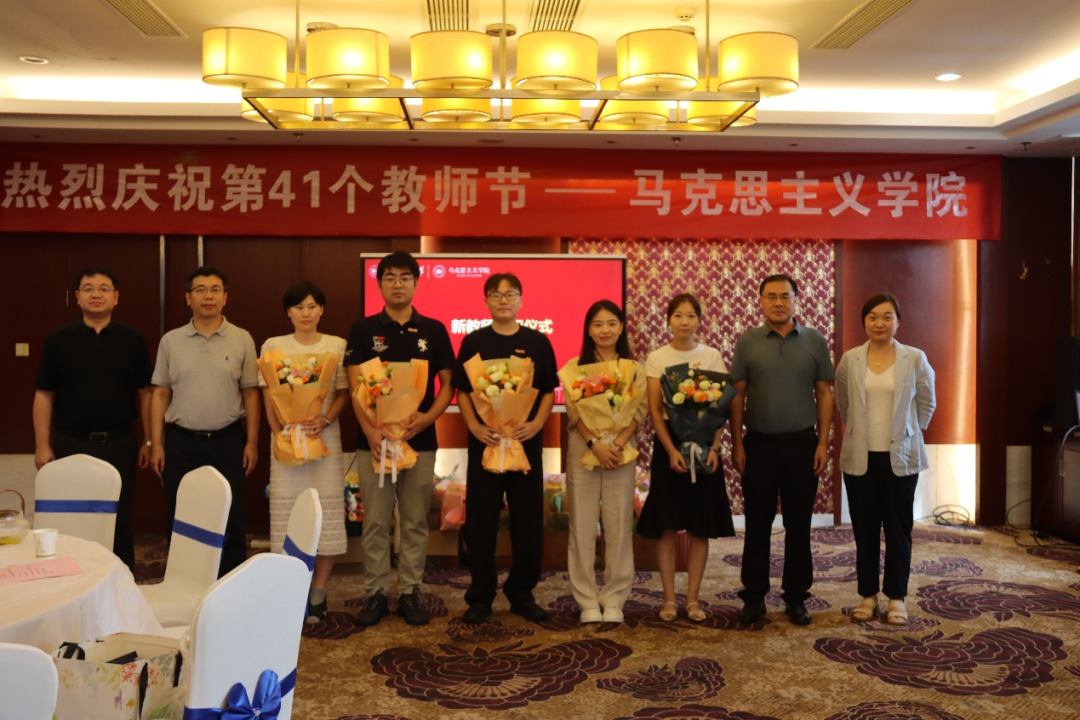 新教师入职仪式上,学院四位领导为焦雯雯、王汉东、倪峻伟、赵莹莹、贺钟霖五位新教师佩戴校徽。新教师们表示,南农马院将是新的起点,在今后的工作中将把握好方向,站稳讲台、站好讲台,努力在教书育人和科研创新上取得优秀业绩。