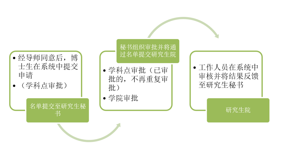A:不再填写原纸质申请和审批表格,由导师或学生向学院研究生秘书提出申请,申请名单提交方式可咨询学院研究生秘书。