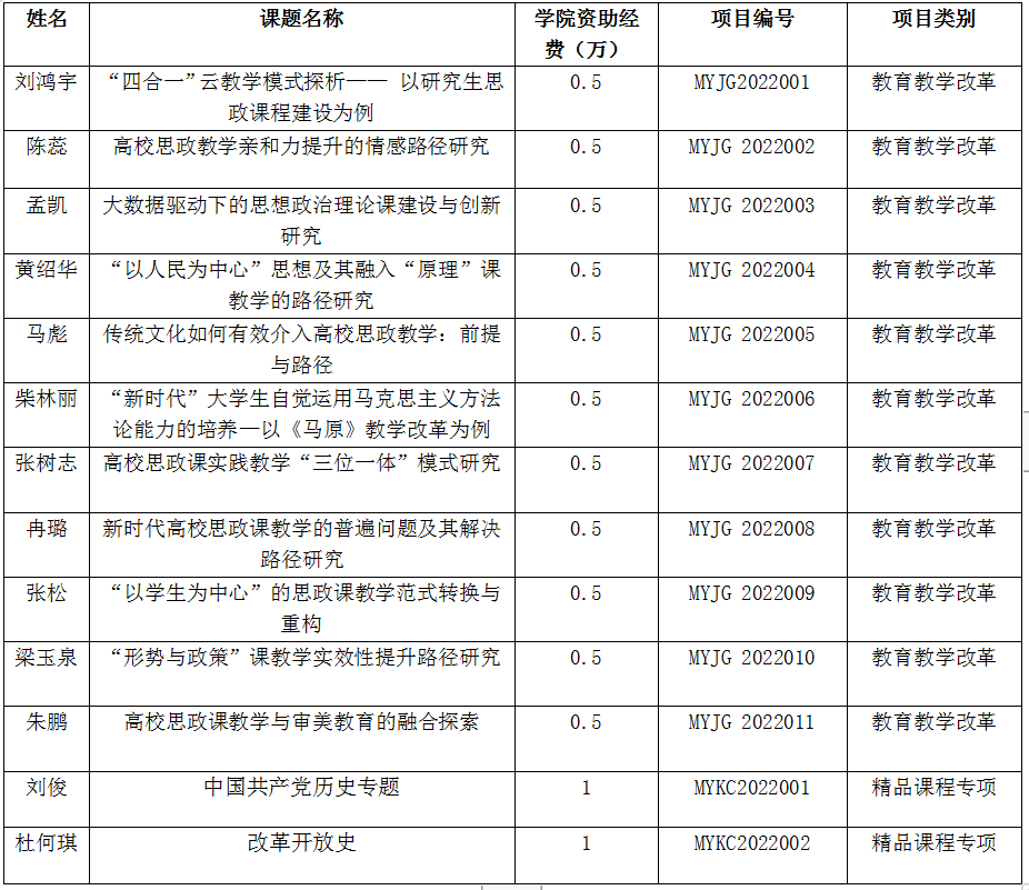 根据《关于组织申报2022年度 小宝探花 教育教学改革项目的通知》和《关于组织申报2022年度 小宝探花 精品课程专项建设项目的通知》要求,经专家匿名评审,学院拟对以下项目给予立项资助,现予以公示如下: