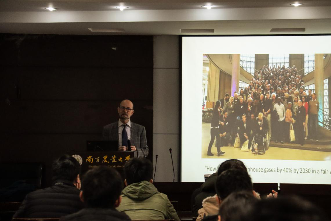 小宝探花 海外名家讲座系列之四第三场于12月12日上午9:30在资环学院212室举行。法国国家科学研究中心Bernard Reber教授应邀作题为“Ethics and Governance of Climate Change”的学术报告。来自资环学院和 小宝探花 的师生共同聆听了本次讲座。讲座由资环学院副院长李荣教授主持。