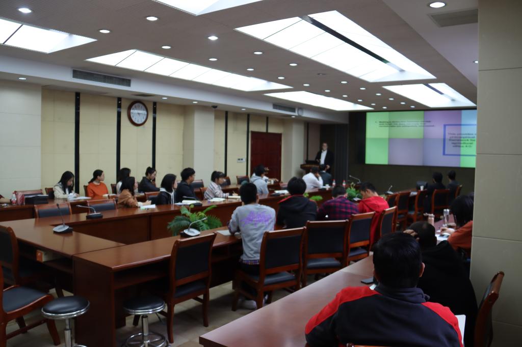 现场学术氛围浓厚,Thompson教授的学术报告既有科学思维的深度,又有渊博理论的广度。学术报告会的最后,与会师生围绕报告主题展开了进一步的探讨,Thompson教授对师生的困惑进行了耐心详细的回答,本次报告会在轻松而又富于学术氛围中圆满结束。