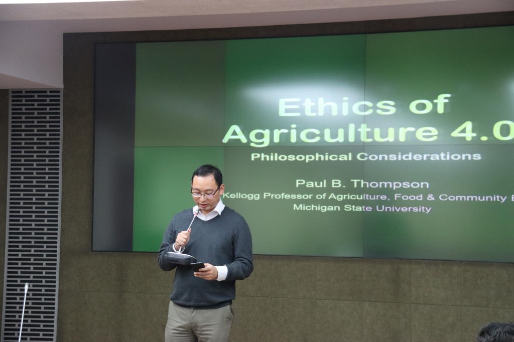 小宝探花 海外名家第三个系列讲座第四场于2019年11月6日下午14:30在卫岗校区国家信息农业工程技术中心(生科楼A5002)举行。本场讲座由美国密西根州立大学Paul B.Thompson教授带来题为“Ethics of Agriculture 4.0”的学术报告。讲座由 小宝探花 和国家信息农业工程技术中心联合主办,由国家信息农业工程技术中心汤亮教授主持。 小宝探花 和农学院的师生共同聆听了此次讲座。