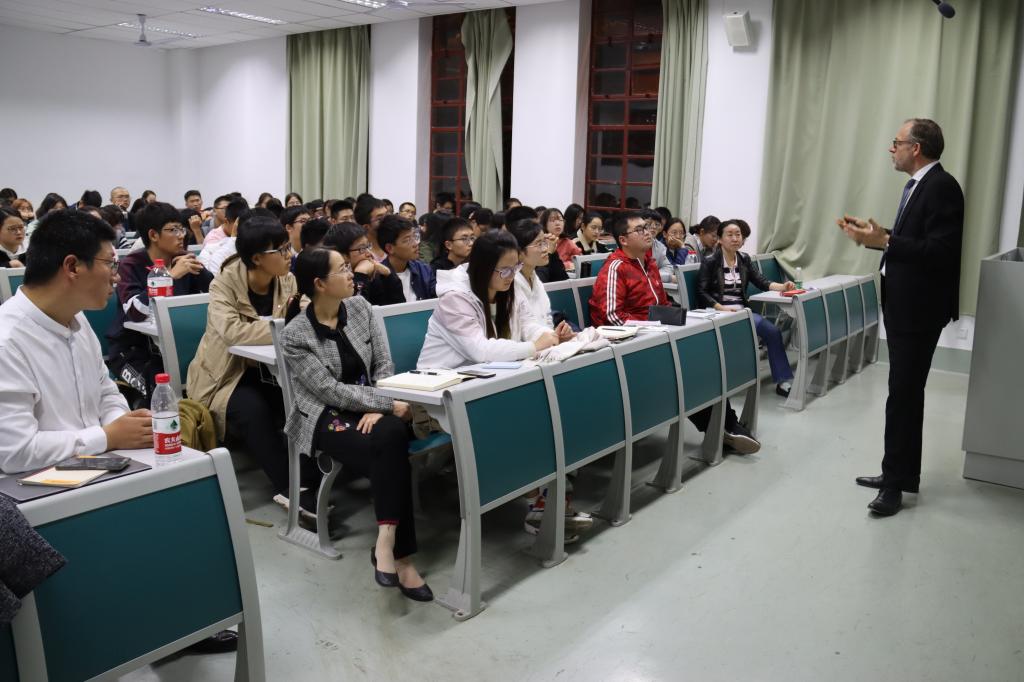 同时,Vincent Blok博士还指出了两种伦理理论,分别为后果论和道义论,最后进行了伦理结构的分析,举了很多生动形象的例子来辅佐其观点,令人醍醐灌顶。报告进行过程中,Vincwnt Blok博士还向同学们提出三个问题,与同学展开热烈的互动,现场讨论热烈,同学们热情高涨。报告生动有趣,角度新颖,开阔了同学们的学术视野,令同学们受益匪浅。