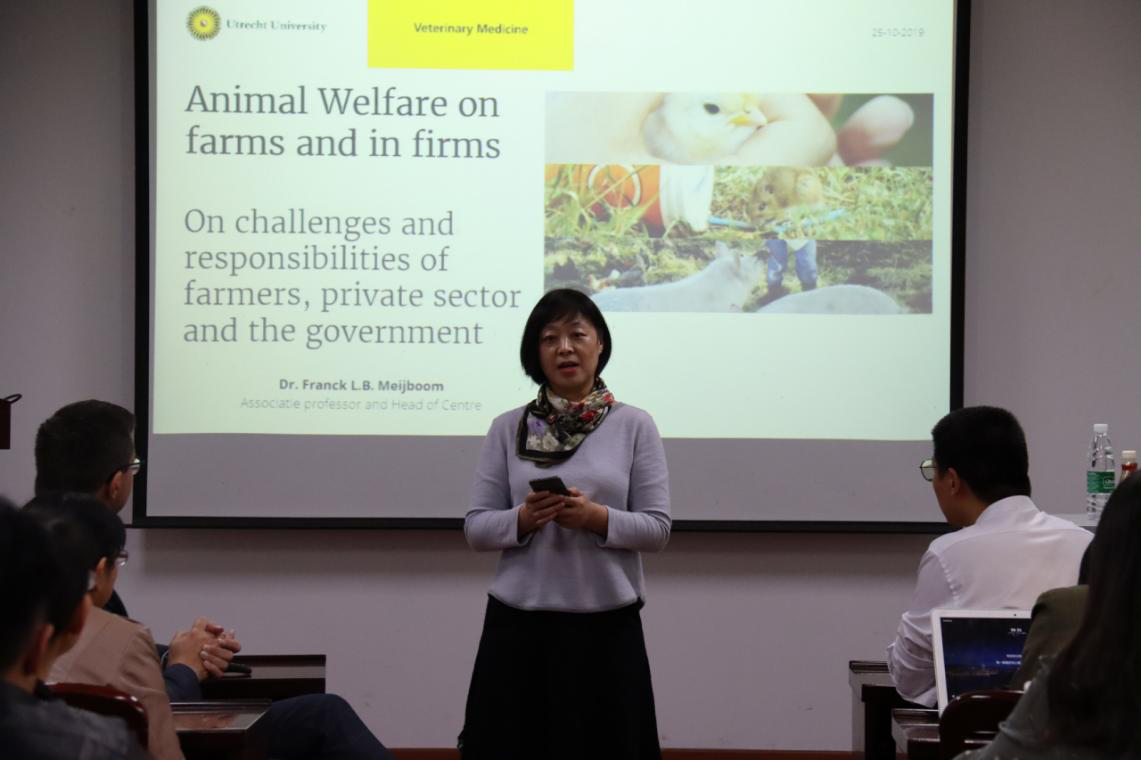 小宝探花 海外名家系讲座第四场于10月25日(周五)上午9:30在逸夫楼动物医学院报告厅举行。来自荷兰乌德勒支大学的Franck L.B. Meijboom博士带来了题为《Animal Welfare on farms and in firms》的精彩报告。报告由动物医学院博士生导师,动物医学院基础兽医学国家重点学科负责人,农业部动物生理生化实验室主任赵茹茜教授主持。参加讲座的有动物医学院、人文与发展学院以及 小宝探花 的师生等。