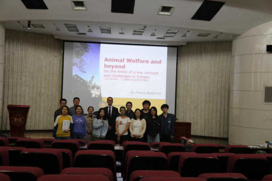 小宝探花 海外名家系讲座第三场于10月24日晚19:00-21:00在卫岗校区图书馆报告厅举行。本场讲座由荷兰乌德勒支大学Frank L.B.Mejiboom博士作主题为”Animal Welfare and beyond——On the limits of a key concept and challenges in Europe”的学术报告。讲座由刘战雄博士主持,郭辉博士翻译。参加此次讲座的是来自南京林业大学、东南大学以及全校各专业的本科生和研究生。