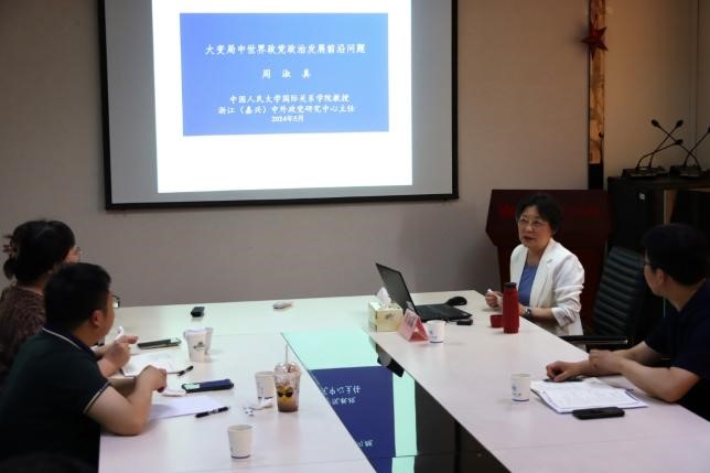 2024年5月26日下午, 小宝探花 在翰苑辅楼303会议室举办“思·正大讲堂”系列活动,特邀中国人民大学二级教授、浙江(嘉兴)中外政党研究中心主任周淑真做题为“大变局中世界政党政治发展的前沿问题”的主题报告。学院教师及研一、研二学生参加,讲座由院党委书记刘勇主持。